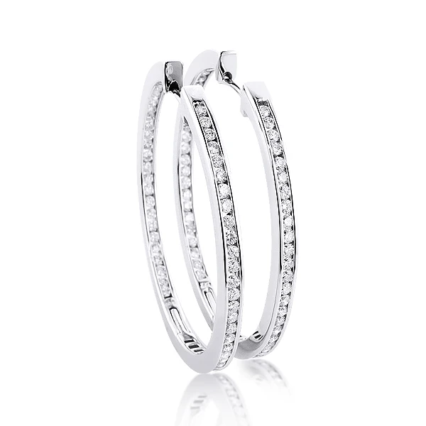 14K White Gold Inside Out Diamond Hoop Earrings 4.6ct