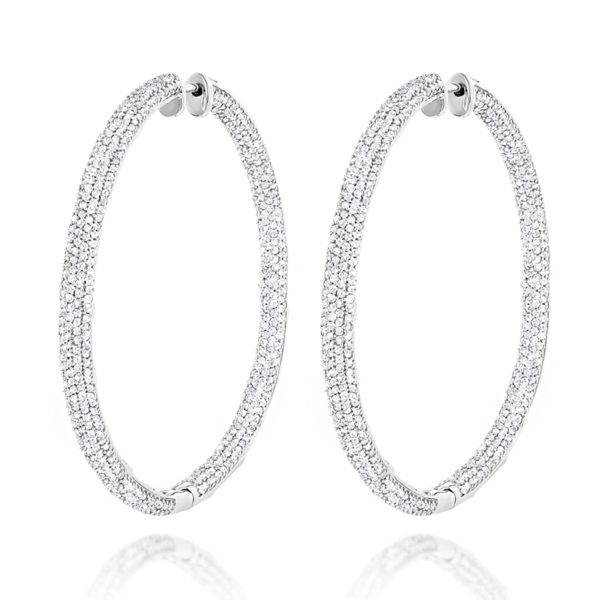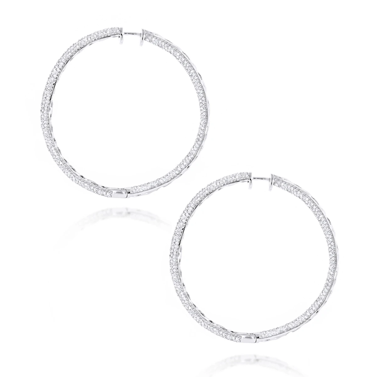 14K White Gold Inside Out Diamond Hoop Earrings 5.40ct