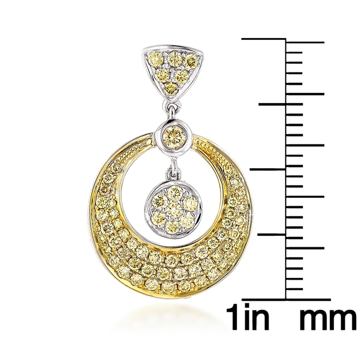These 14K Natural Yellow Diamond Drop Earrings showcase 1.33 carats of sparkling round diamonds. Featuring a fabulous circle design and a highly polished gold finish, these lovely 2-tone gold diamond earrings are simply irresistible.
