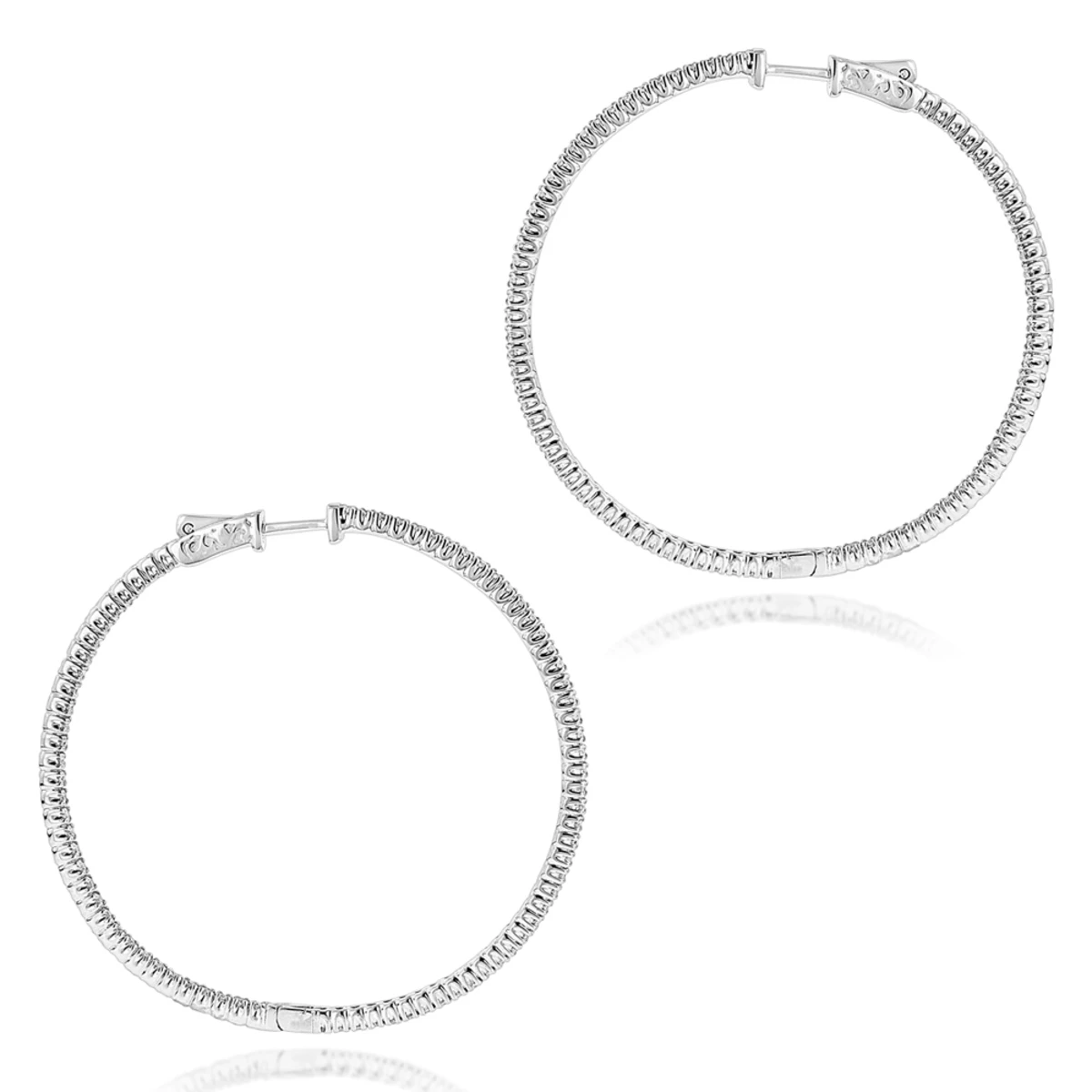 2mm 2in Inside Out Diamond Hoop Earrings For Women 1.6ct 14K White Gold