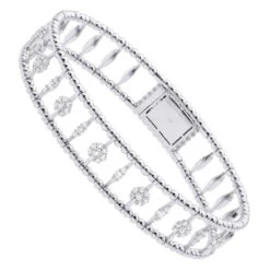 14K White Gold Thin Diamond Bangle Bracelet For Women 2.5 Carat