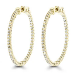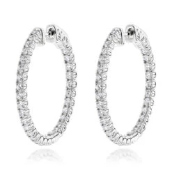 1 Inch Inside Out Classic Diamond Hoop Earrings 2.75ct 14K White Gold G-H VS-SI