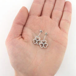 Dangling Flower Earrings With Black And White Diamonds 0.53ct 14K White Gold