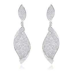 Designer Drop Diamond Earrings For Women 0.6ct 14K White Gold