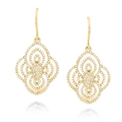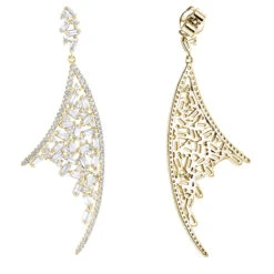 18K Yellow Gold Ladies Designer Diamond Leaf Earrings 3 Carats