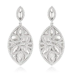 Luxurman Love Quotes Sterling Silver Swirl Diamond Drop Earrings Women’s