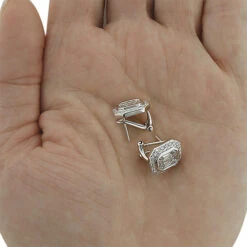 18K White Gold Unique Designer Diamond Earrings Studs 2.04ct By Luccello