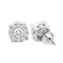 Royal Halo Circle Diamond Earrings For Women With Sapphires 14K White Gold