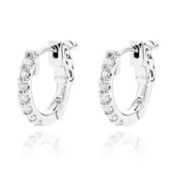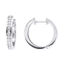 1/2 Inch Classic Huggie Hoop Earrings 14K White Gold With Round Diamonds 1 Carat