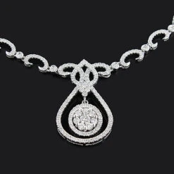 Ladies Diamond Designer Flower Necklace 4.5ct 14K White Gold