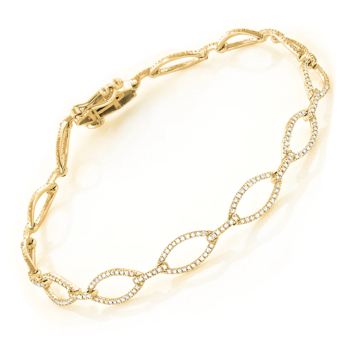 This Ladies Oval Link DIamond Bracelet showcases 0.65 carats of sparkling round diamonds, each expertly set in 14K gold. Featuring a delicate design and a highly polished gold finish, this ladies diamond bracelet is available in 14K white, yellow and rose gold.